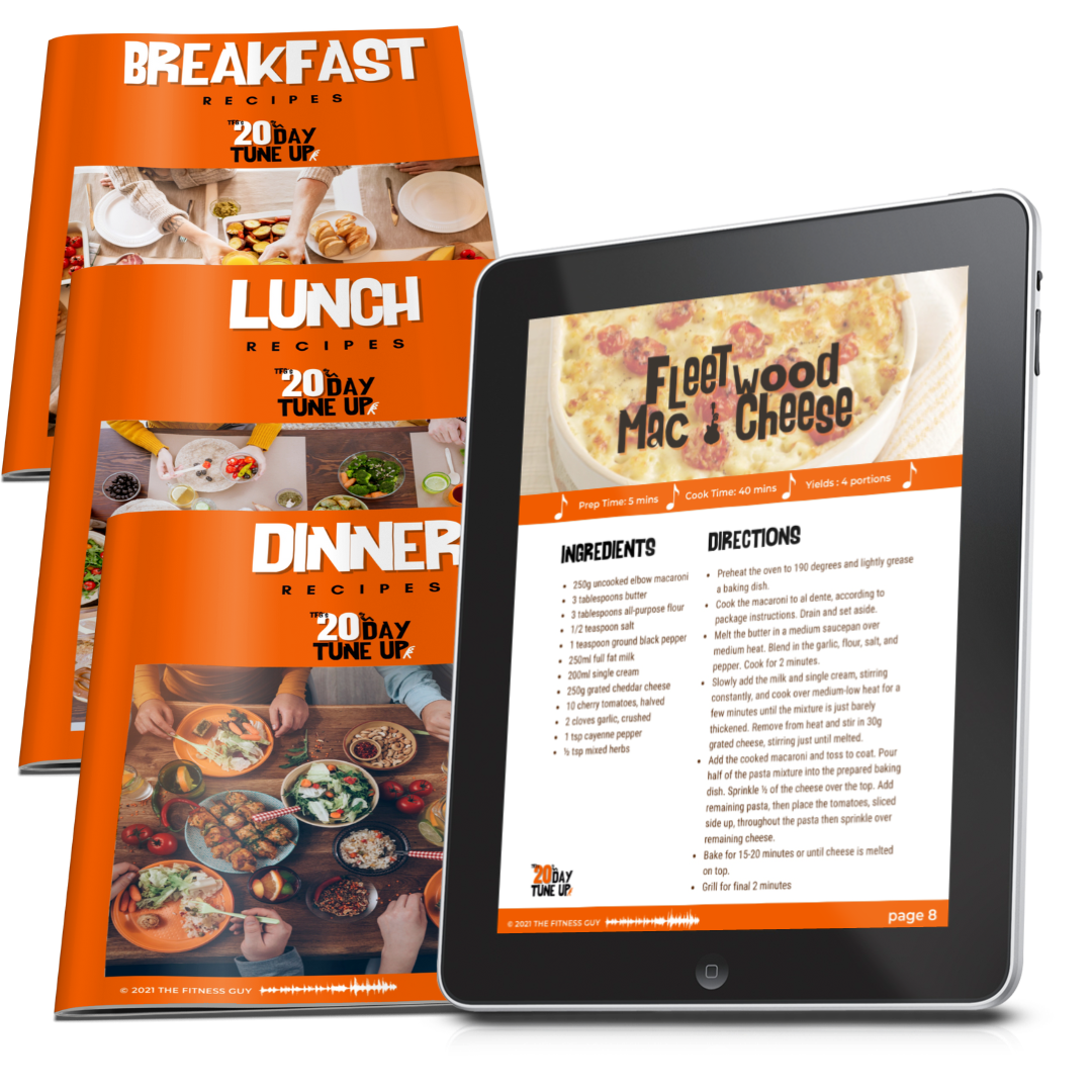 IEating well shouldn’t feel complicated. With the 20-Day Tune-Up, you’ll get 20 breakfasts, 20 lunches, 20 dinners, plus the Snack Attack book with over 100 snack ideas — all designed to make healthy choices quick, tasty, and completely stress free.